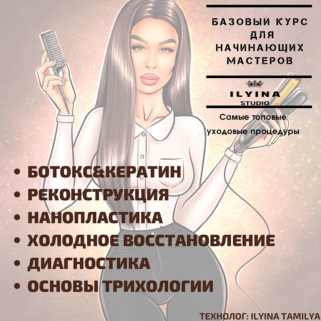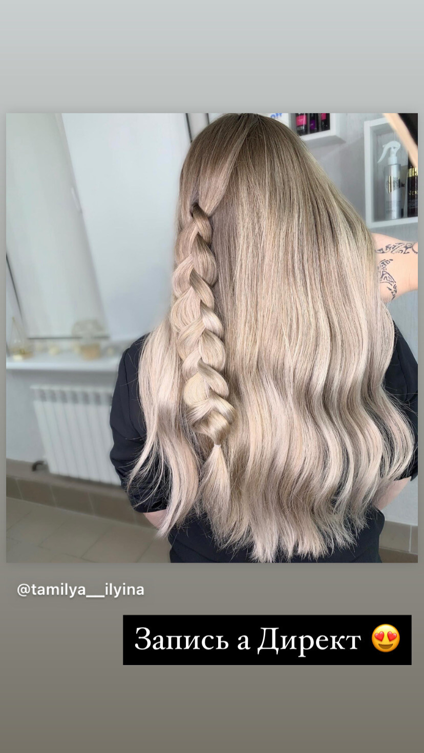 Услуги: Виртуальные консультации Безопасно Обучение Кератиновое выпрямление i 9 ч. от 10990 руб. Парикмахерские услуги Выпрямление волос Кератиновое выпрямление волос i 3 ч. от 3500 руб. Окрашивание волос Окрашивание волос AirTouch i 4 ч. от 6000 руб. Окрашивание волос Балаяж i 4 ч. от 6000 руб.